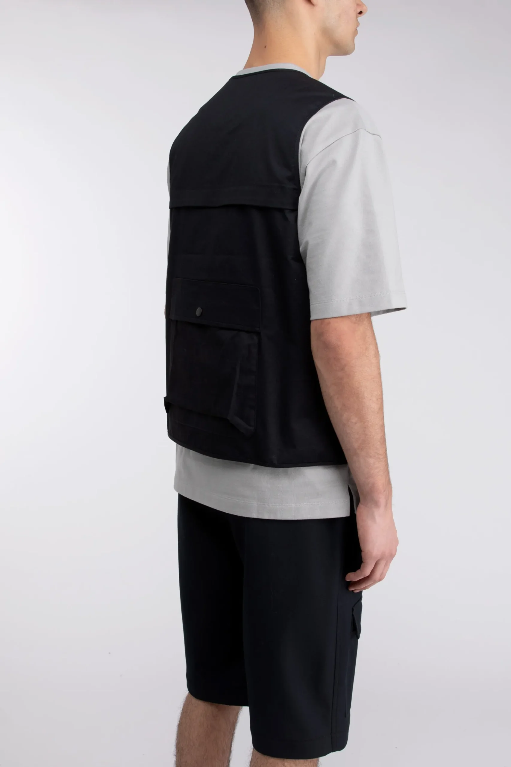 Relaxed fit. Cotton twill fabric. Elastic loop detail. Zip front closure. Fully lined. Patch front and pack pockets with snap buttons. 26″ length based on size M.