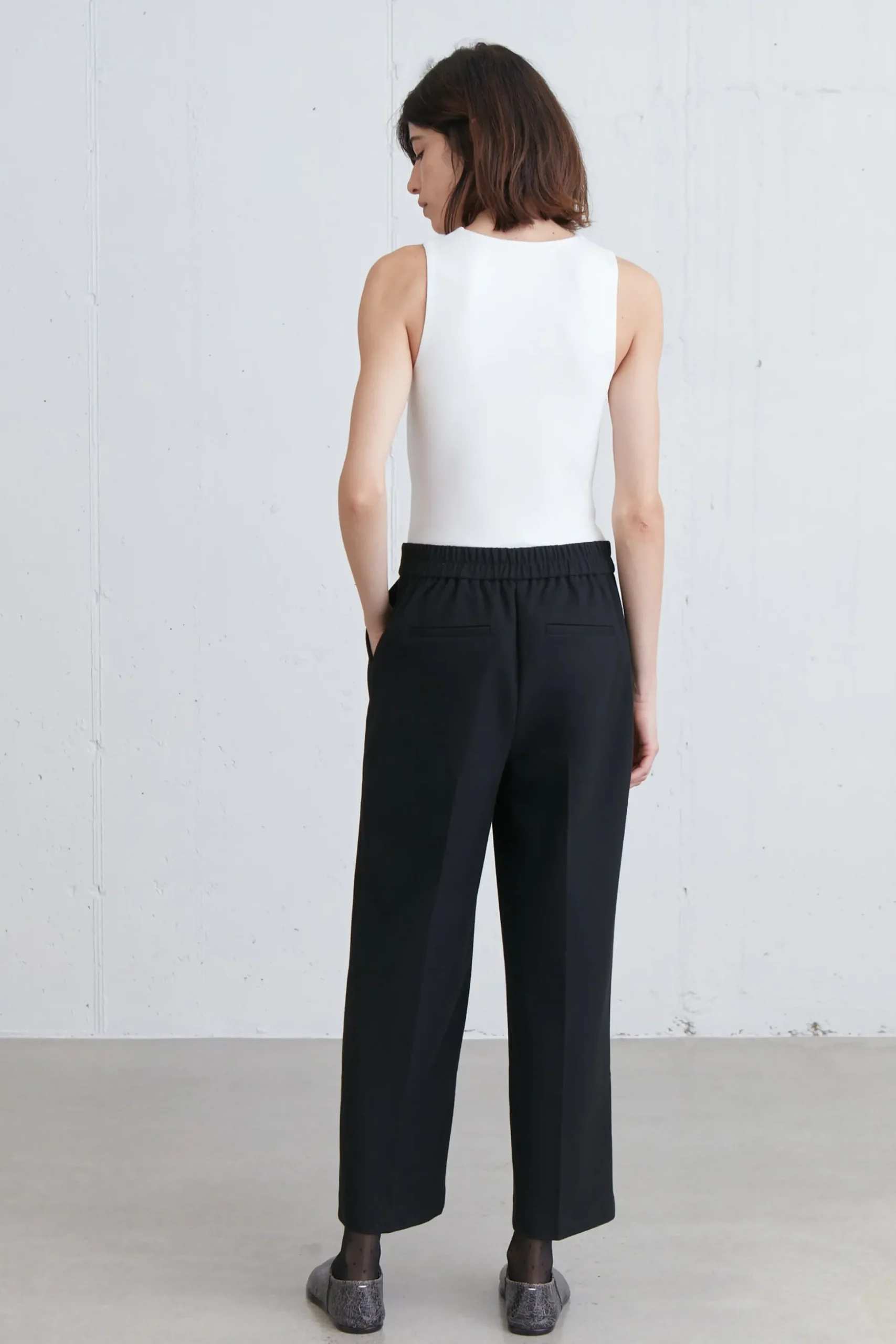 These cropped pants are made in a classic fit with a straight leg cut and high-rise waist that is elasticated at the back. A versatile wardrobe staple, wear it with a chunky sweater or with a satin blouse.