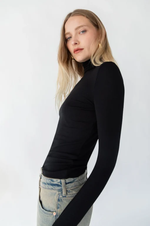 This fitted fine knit turtleneck long sleeve top is a staple to wear all season long. Layer yours under chunky knit cardigans to wool-blend coats.