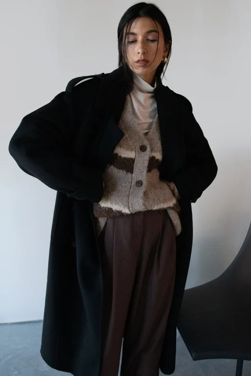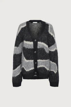 This cozy intarsia button up cardigan is made in an oversized fit and is finished with large buttons and touches of wool. A new season favourite you can wear over satin dresses to a more casual outfit with leggings for running errands.
