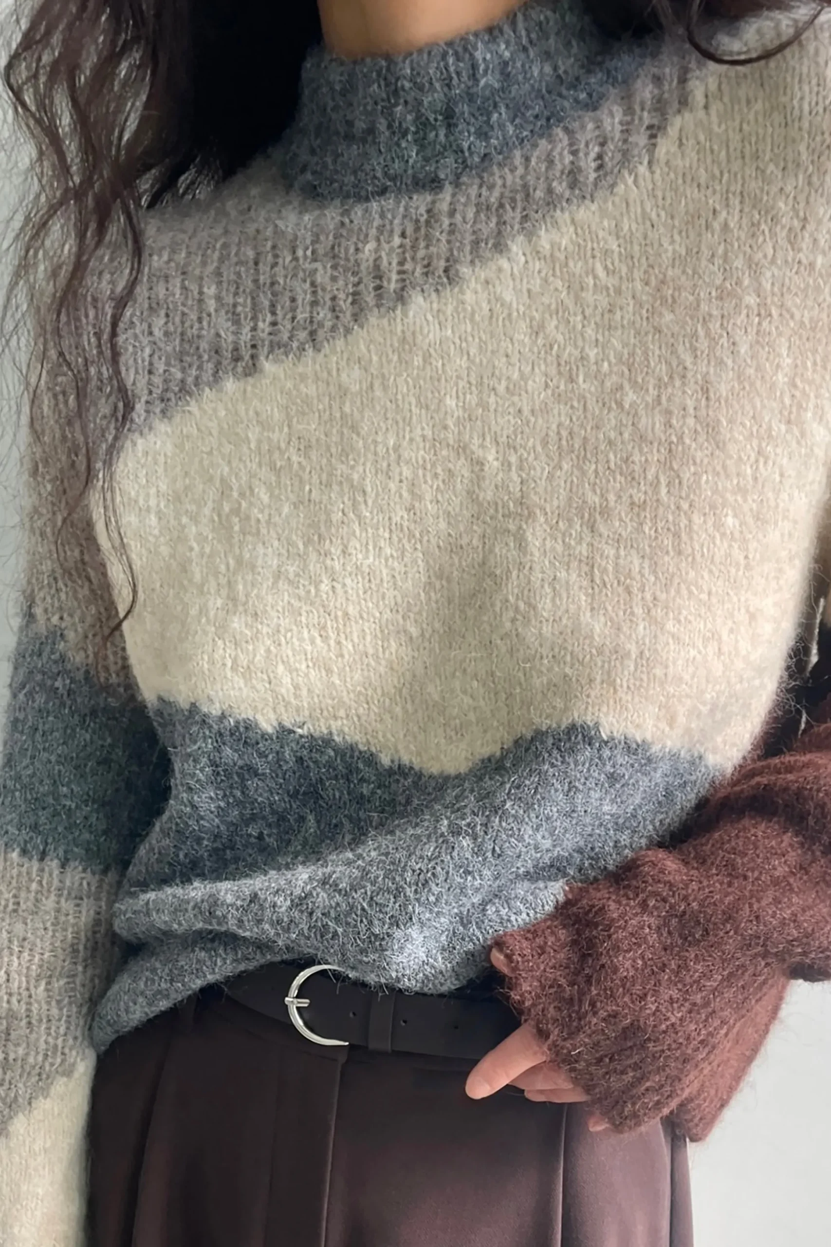 This cropped intarsia knit sweater is made in a relaxed fit with a high neckline and ribbed trims. The perfect knit this season, wear yours with trousers and boots.