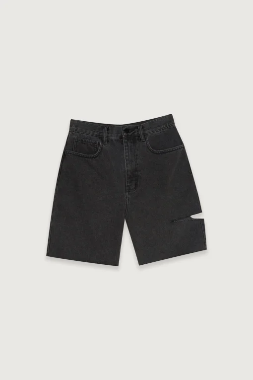 These long denim shorts are cut from 100% organic cotton and has a relaxed fit in a bermuda silhouette. It has a high-rise waist, distressed details and frayed hems. Wear yours with a fitted top and a blazer.
