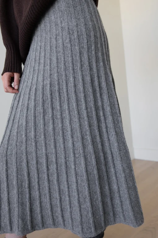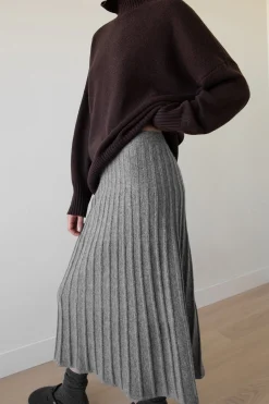 This sweater midi skirt is made from a raised rib-knit in an A-line silhouette. A cozy choice to wear this season, pair yours with a turtleneck sweater and knee high boots.
