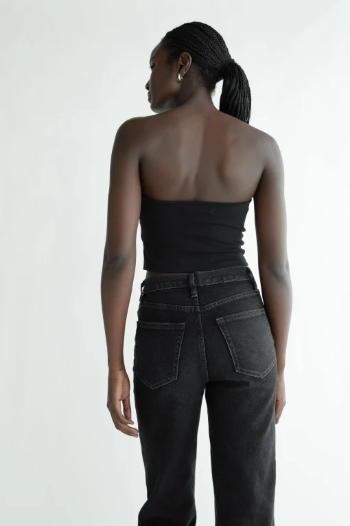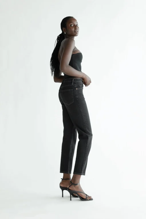These versatile straight leg jeans in washed black are an effortless style to add to your essentials for your weekly rotation. Cut from 100% organic cotton with a comfortable stretch. It has a high-rise waist and has an ankle length hem. Style it casually or more elevated depending on the occasion.