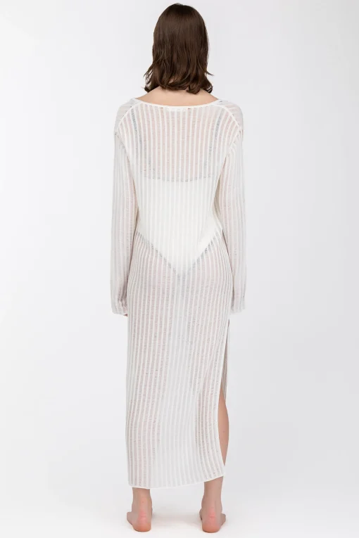 This reversible crochet knit maxi dress coverup is made in a relaxed fit. It’s detailed with a deep V-neck with ties and split sides. A versatile piece you can wear with ties at the front or at the back. Take yours on your next vacation.