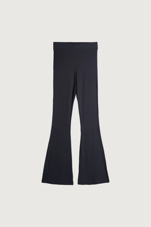 Slim fit. Fitted leg with flared hem. High-rise waist. Ribbed fabric. 32.5″ inseam.