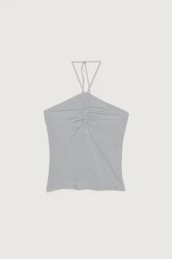 This halter neck top is cut from a sparkly knit fabric in a slim fit. It’s ruched at the front and has a subtle sweetheart neckline with halter ties. Perfect for a night out or for out of your festival looks.