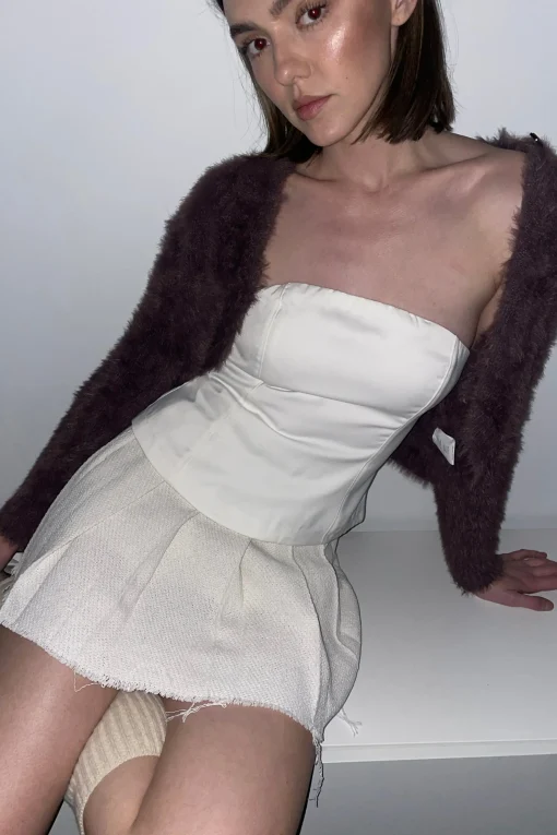 This satin tube top is made in a form-fitting silhouette with boning at the front and a smocked back for comfort. A versatile piece to wear with all your looks this season from mini skirts to jeans.