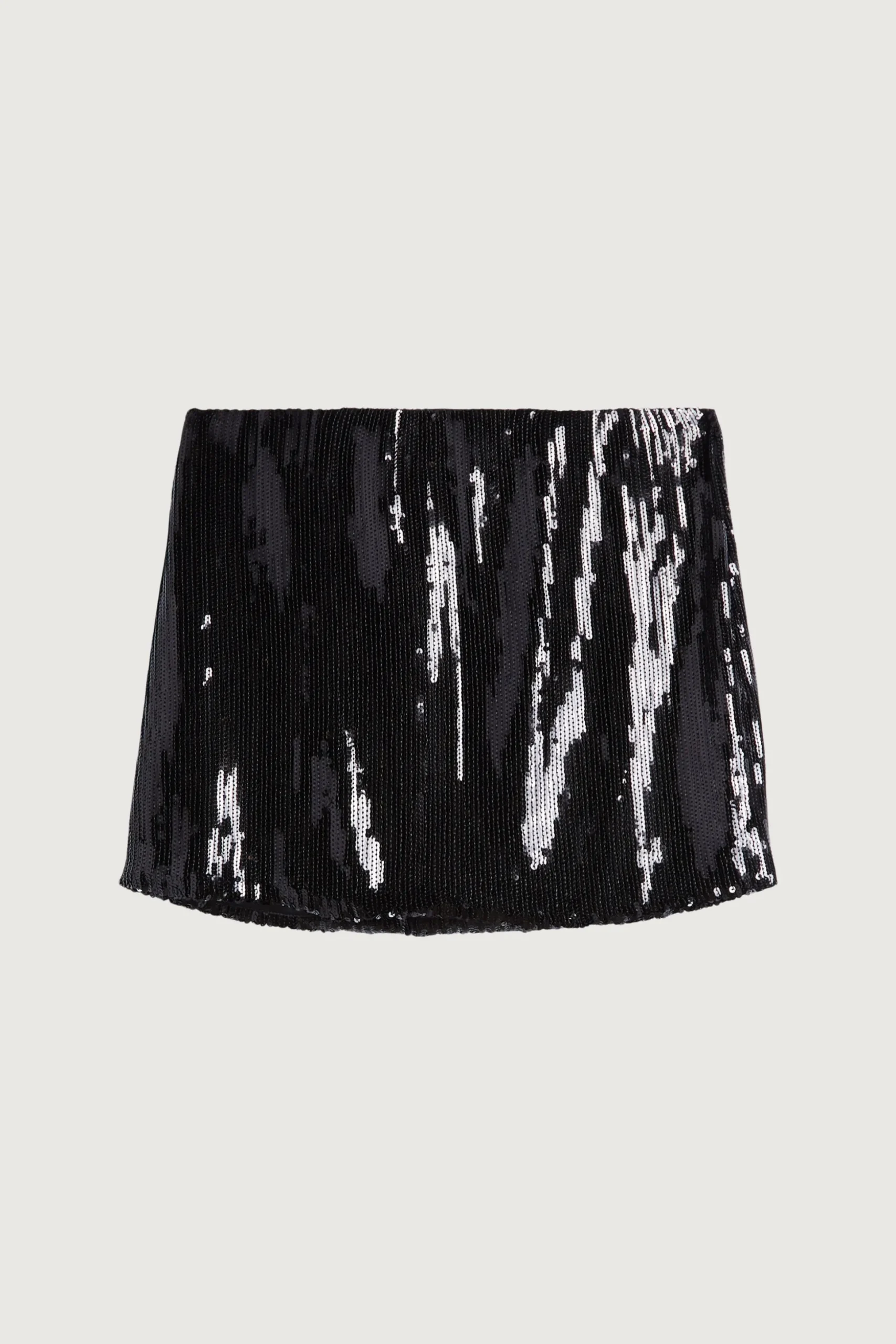 Classic fit. Mini length. Sequin design. Lined. Elasticated waist. 13.5″ length based on size S.