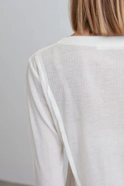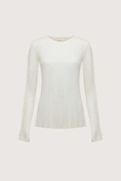 This semi-sheer ribbed knit top is made in a relaxed fit and has a crew neckline. Perfect for layering this season, wear yours with a wool blend coat and high-rise trousers.
