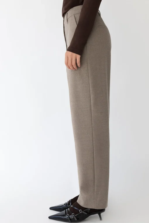 These straight leg trousers are made in a classic fit and has a high-rise waist. It is detailed with side and welt back pockets and an optional belt loop. An essential to add to your wardrobe, wear yours with a cropped sweater and a belt.
