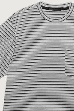 Relaxed fit. Crew neckline. Striped design. Front patch pocket.