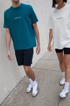 Relaxed fit. “Sundays” graphic. Crew neckline.