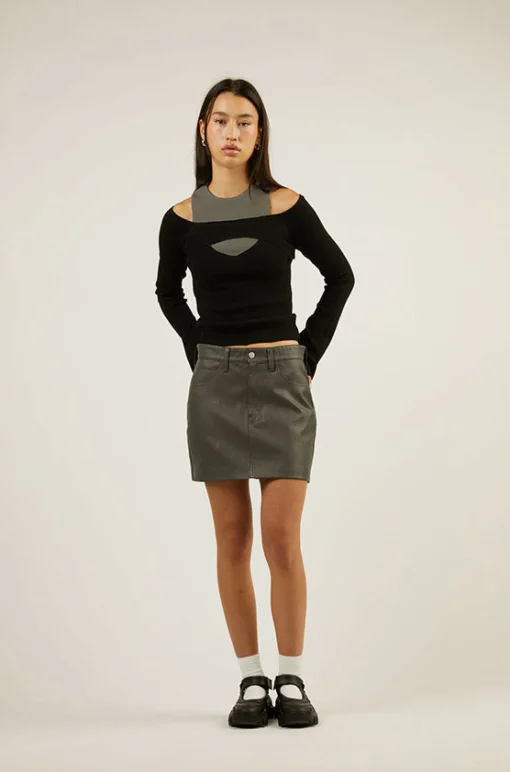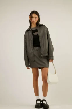 This vegan leather skirt is made in a classic fit and features a high-rise waist, side pockets and a belt loop. Pair it with a sweater or the matching Vegan Leather Bomber Jacket (OW-11049-W).