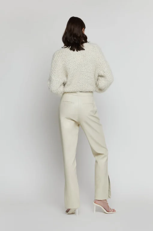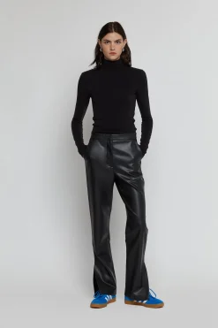 These vegan leather pants are made for a slim fit and feature a straight cut leg, a high-rise waist, side pockets and split hems. Designed to style with anything in your wardrobe, go casual with sneakers or dress it up with heels.