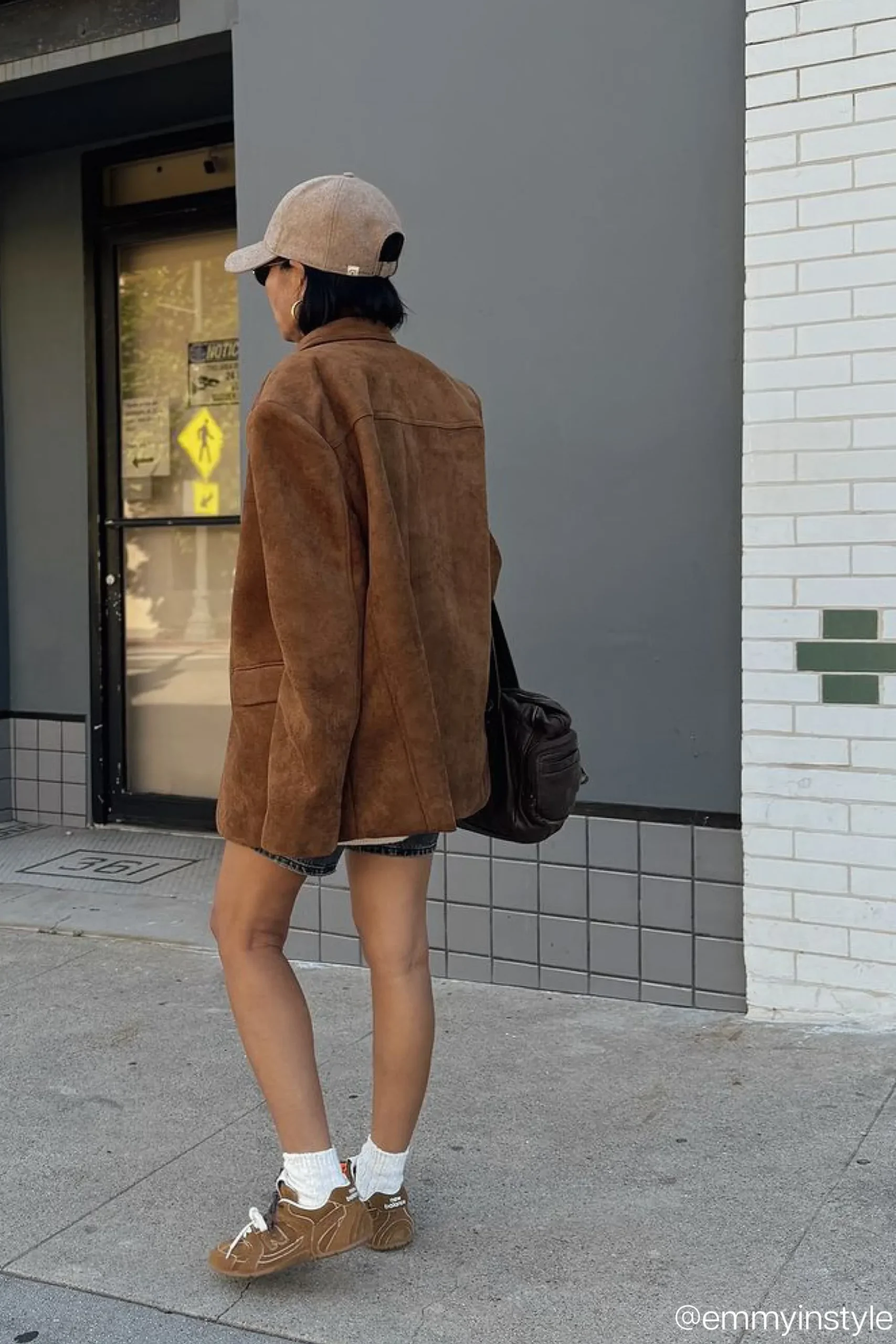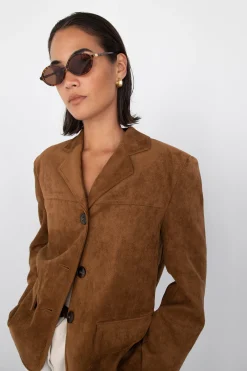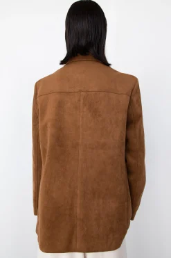 This vegan suede blazer comes in an oversized fit. Wear this versatile blazer this autumn season over trousers, or dress it up by styling it over a midi skirt.
