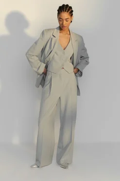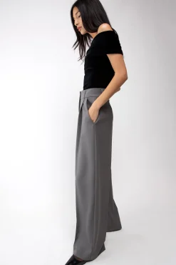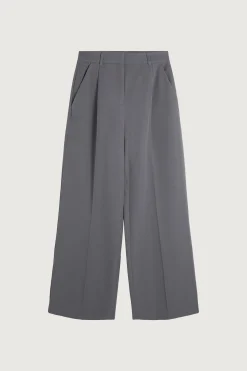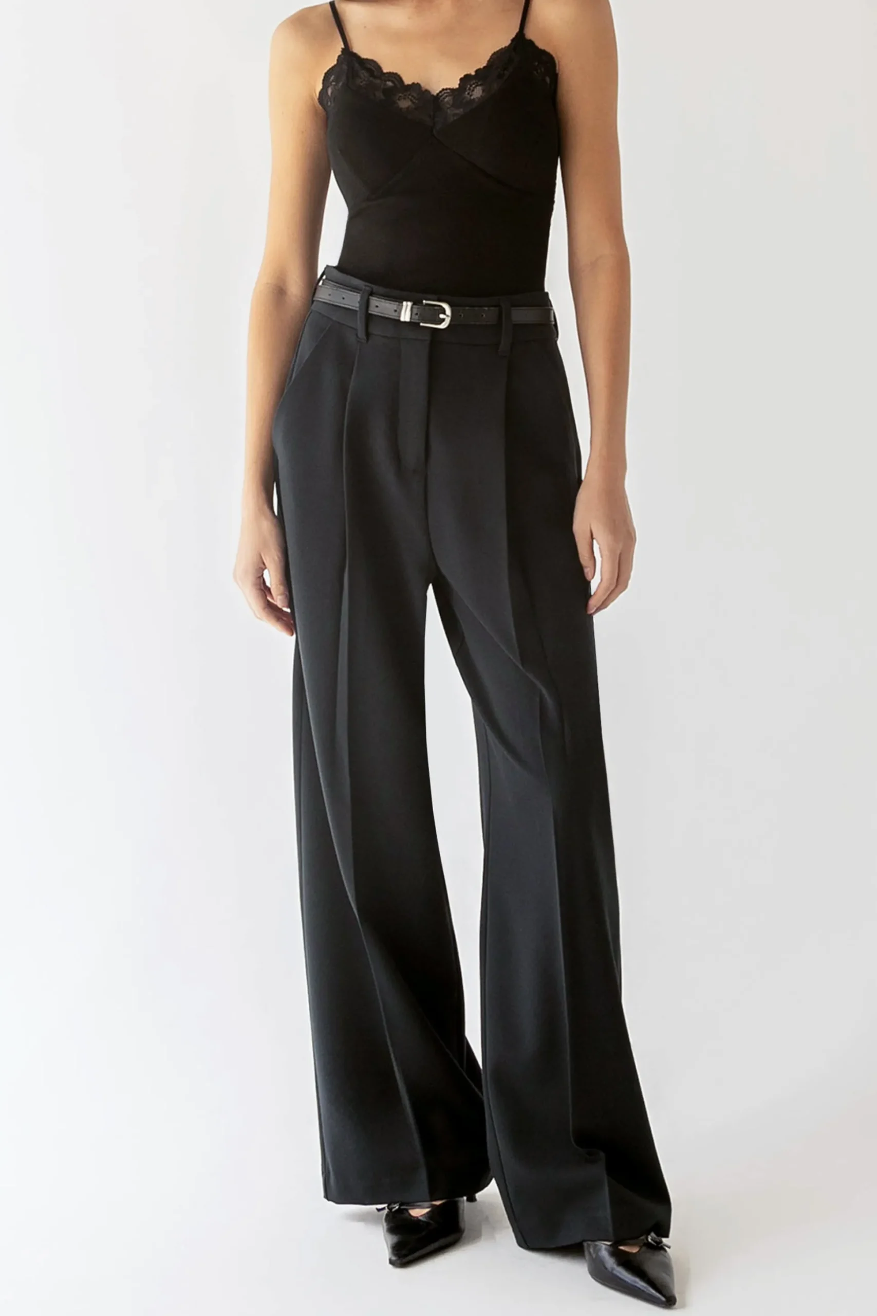 These wide leg trousers are made from woven twill in a relaxed silhouette. It has a flattering high-rise waist, side pockets and front pleats to give that tailored look. The wide leg design is the perfect detail to elevate any look, wear yours with heels or with sneakers for a more casual look.
