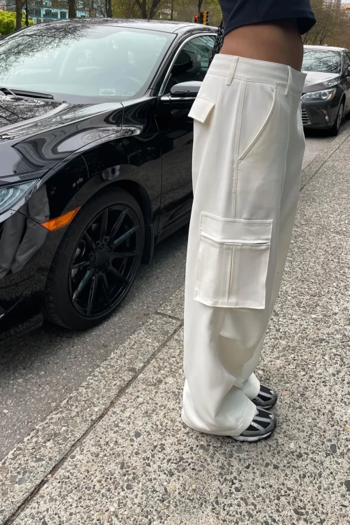 This wide leg suiting cargo pant is made in a relaxed fit and has a mid-rise waist. A versatile option to wear during your week and into the weekend. Pair it with the Cropped Blazer (OW-11848-W).